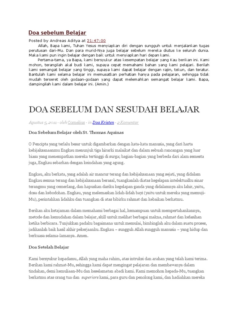 Doa sebelum belajar dan sesudah belajar channel anak sholeh youtube. Doa bapa kami dalam bahasa inggris versi katolik merupakan doa utama di dalam agama katolik, yang sering dijadikan sebagai pembuka atau penutup doa lainnya. Doa belajar lainnya yang dapat dibaca adalah sebagai berikut.