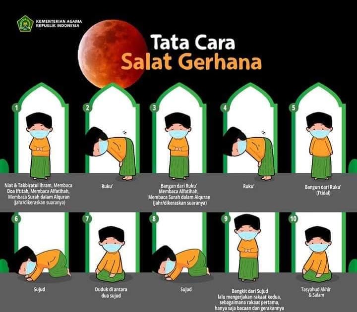 Maksud dari perintah allah swt untuk bersujud kepada yang menciptakan matahari dan bulan adalah perintah untuk mengerjakan shalat gerhana matahari dan gerhana bulan. Bacaan doa bacaan niat dan cara shalat gerhana bulan, berikut tuntunan dan contoh khutbahnya gerhana bulan sebagian terjadi pada hari ini, 19 november 2021, berikut bacaan niat, tuntunan shalat. Sedangkan urutan tata caranya sebagai berikut, 1.